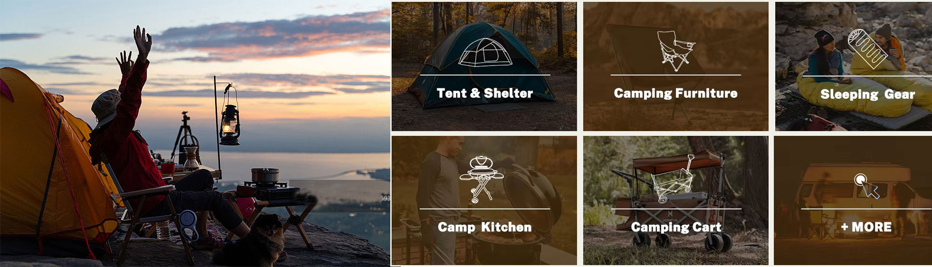 Produk utama: Tenda Kemah & penampungan, kasur mengembang & sofa, kantong tidur, Meja luar ruangan, keranjang Kemah dapur portabel luar ruangan
